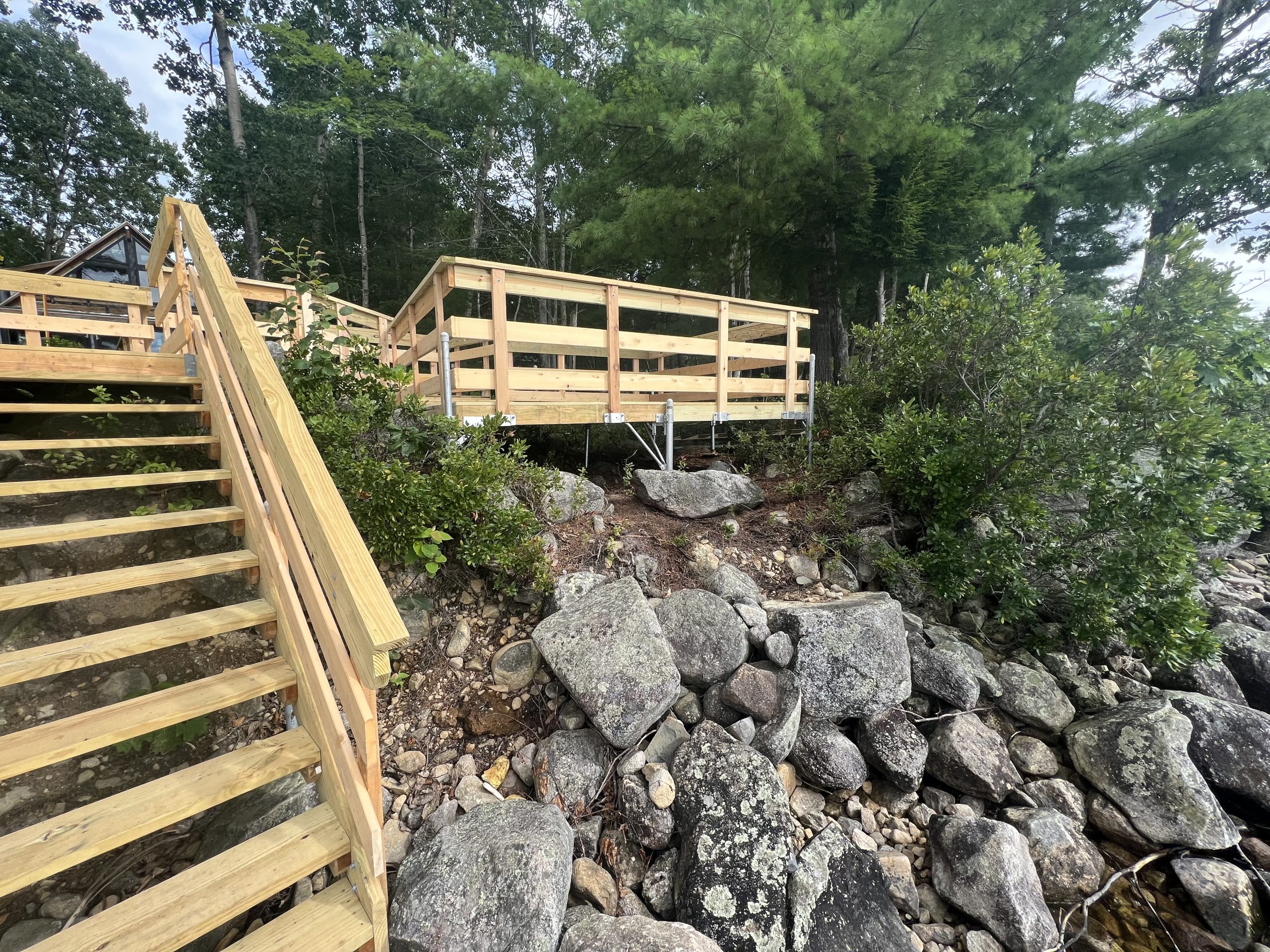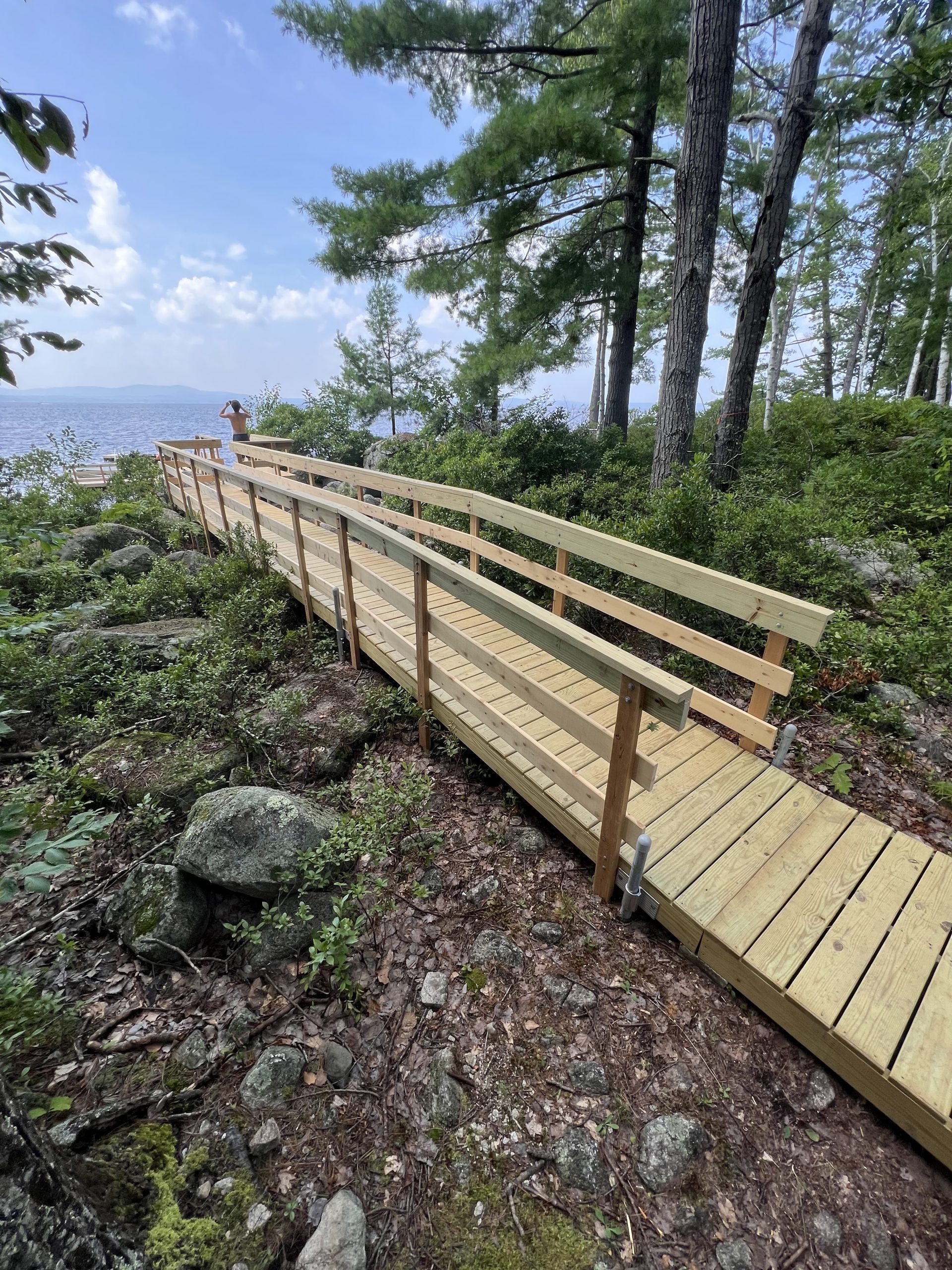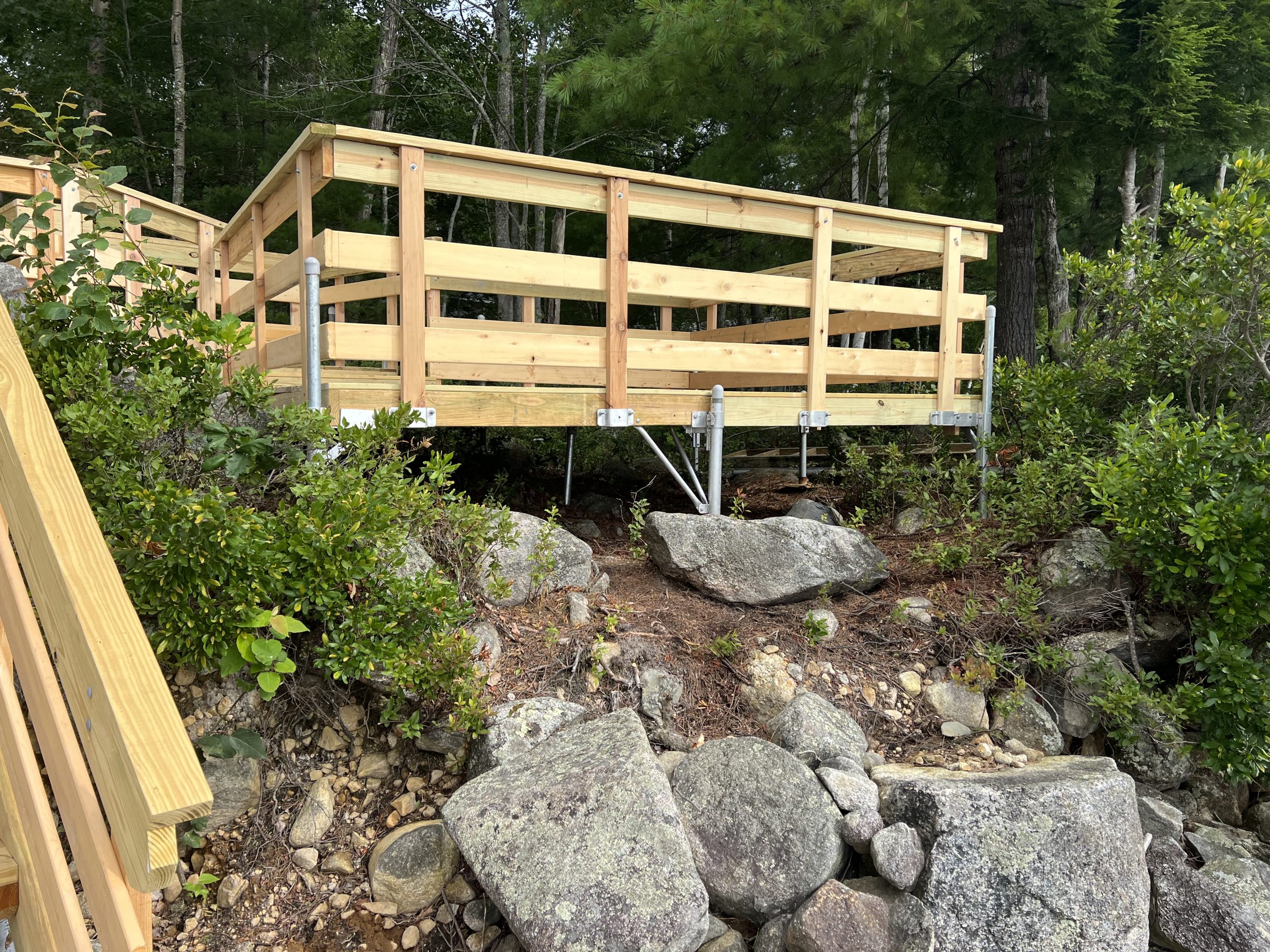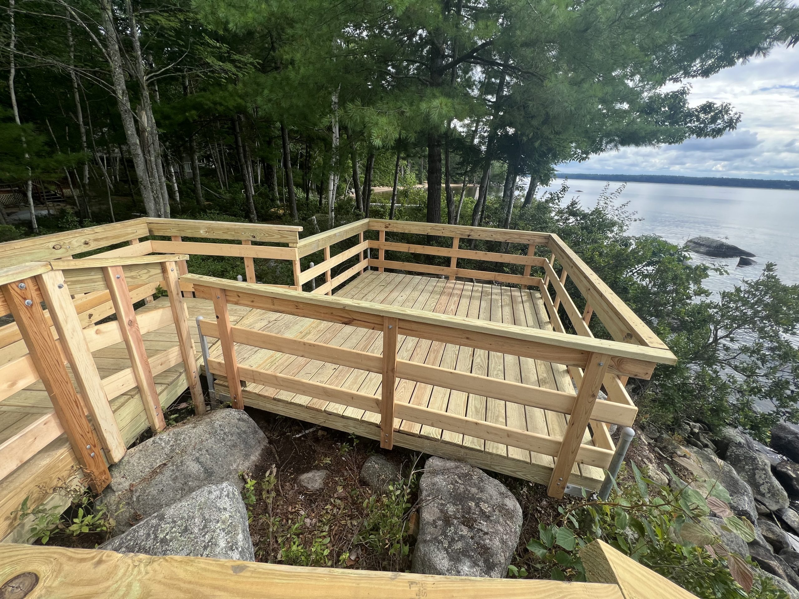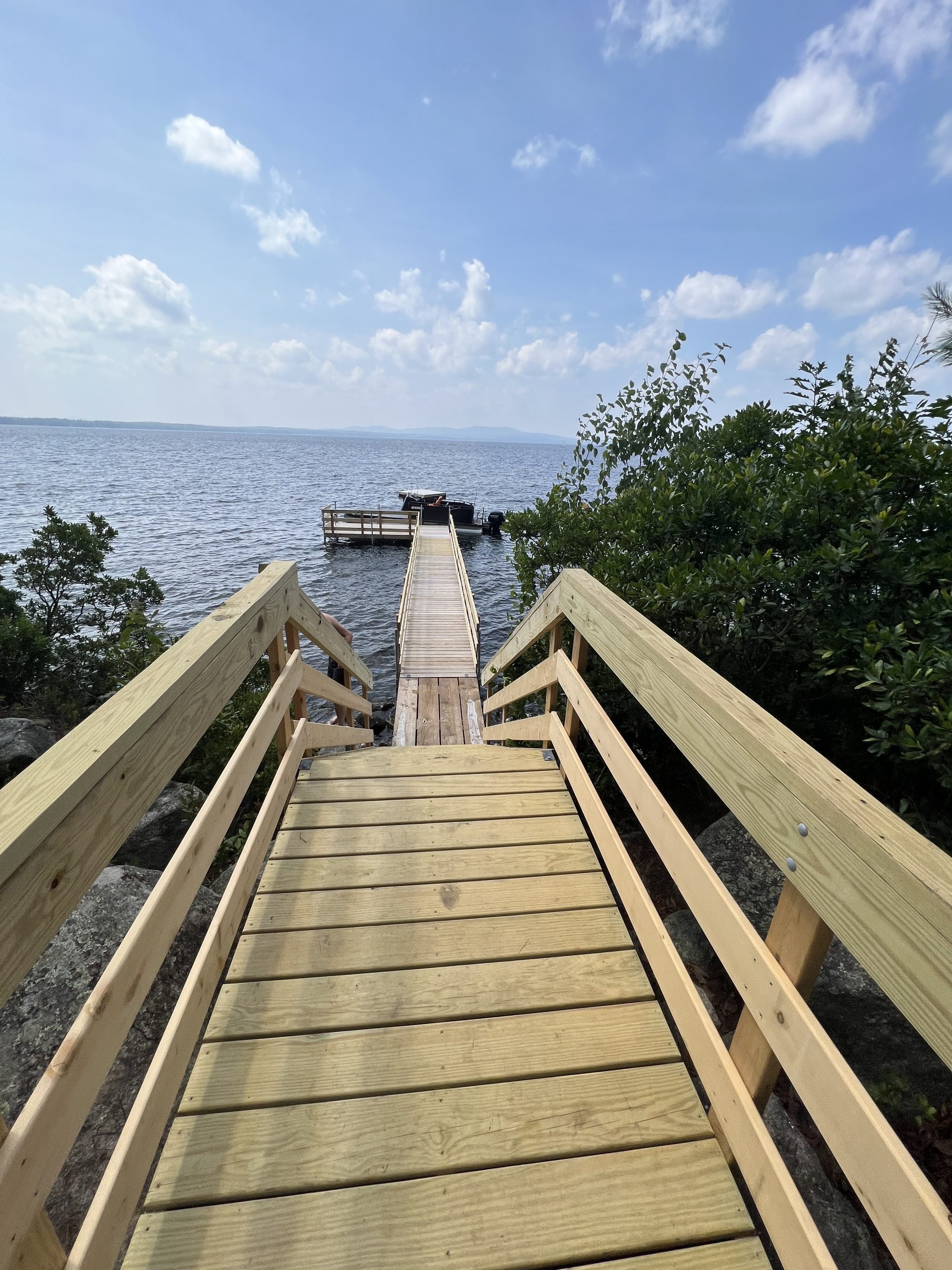 WE BUILD CUSTOM SHORELINE PLATFROMS, WALKWAYS AND SEATING AREAS. WE CAN BUILD THEM ON YOUR HILLSIDE, SHORELINE OR WATERFRONT. THEY ARE SEMI-PERMANENT STRUCTURES THAT CAN BE LEVELED, MOVED OR RELOCATED IF NEED BE.